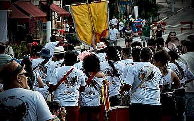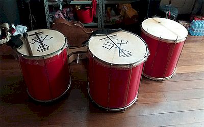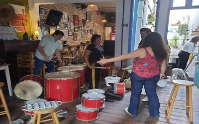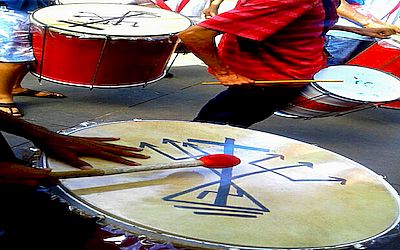 A Bateria é a alma pulsante do nosso Cordão, responsável por manter o ritmo da batucada durante o desfile carnavalesco, além de apresentar-se também durante outros cortejos e eventos musicais do Kolombolo.